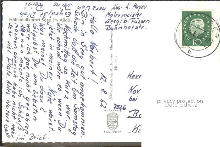 71906998 alte Postkarte Seeg Panorama Teilansichten postalisch gelaufen KatCode: 11110009777170