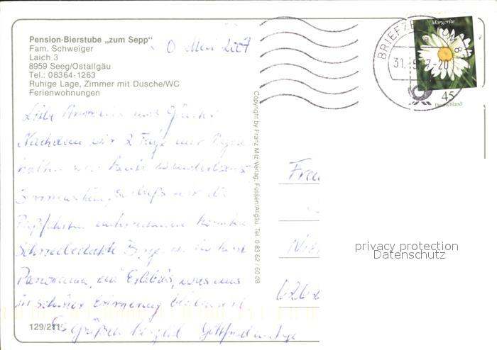 alte Postkarte Seeg Pension Bierstube postalisch gelaufen Erhaltung siehe scans