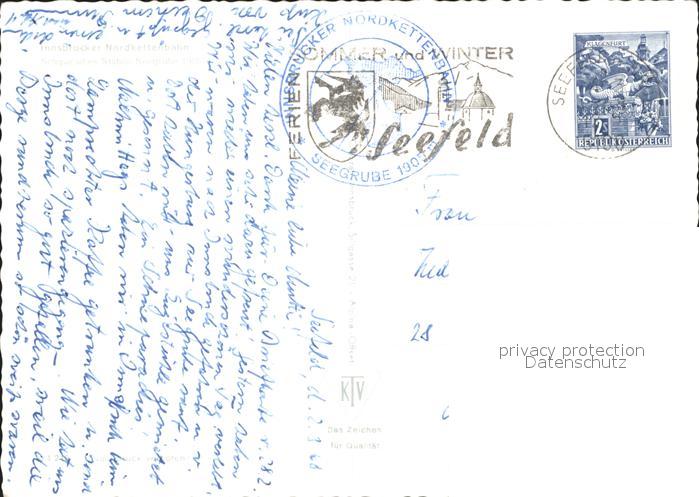 71952610 alte Postkarte Seegrube Innsbrucker Nordkettenbahn postalisch gelaufen Erhaltung siehe scans KatCode: 11110013053044