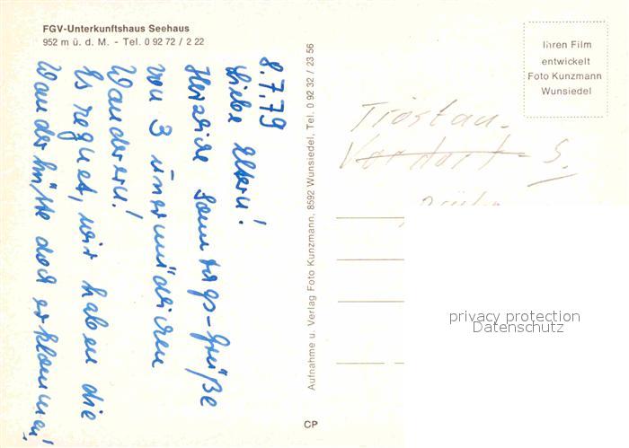 72888136 Seehaus Fichtelgebirge FGV Unterkunftshaus postalisch nicht gelaufen Erhaltung siehe scans [AndreD76] KatCode: 11110009479161
