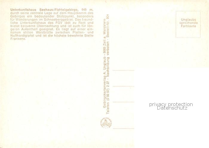 73841481 Seehaus Fichtelgebirge Unterkunftshaus Seehaus postalisch nicht gelaufen Erhaltung siehe scans [WerneD78] KatCode: 11110009479161