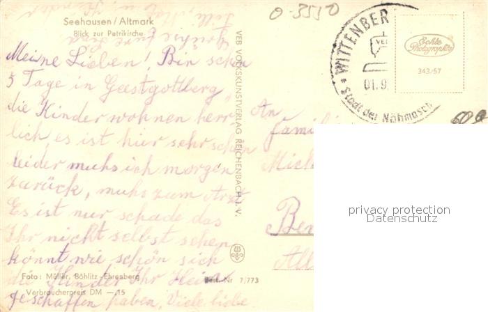 43497739 alte Postkarte Seehausen Altmark Petrikirche postalisch gelaufen Erhaltung siehe scans [KathaD81] KatCode: 11110015090520