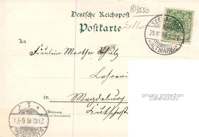 33549768 alte Postkarte Seehausen Altmark Teilansichten Turm Kirche Bahnhof Schwibbogen Deutsche Reichspost Litho postalisch gelaufen Erhaltung siehe scans [FriedD77] KatCode: 11110015090520
