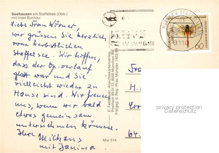 73031395 alte Postkarte Seehausen Staffelsee Fliegeraufnahme Insel Buchau postalisch gelaufen Erhaltung siehe scans [KathaD81] KatCode: 11110009180132