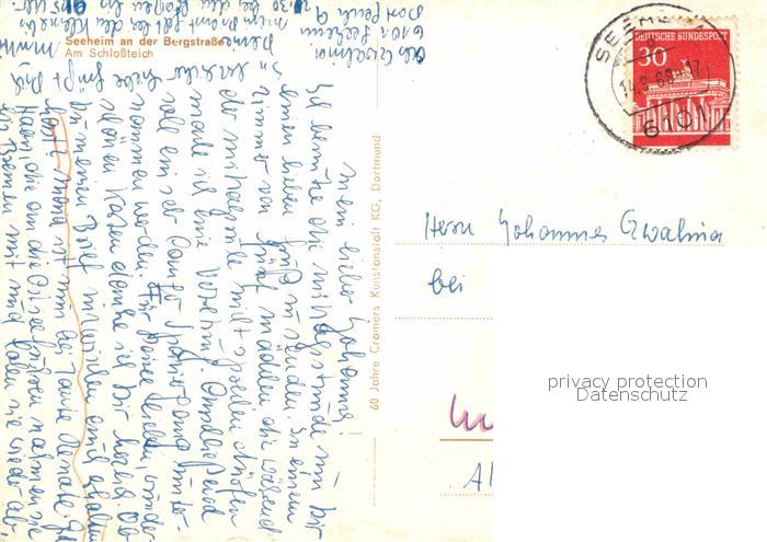 72705343 alte Postkarte Seeheim-Jugenheim Am Schlossteich postalisch gelaufen Erhaltung siehe scans [FriedD77] KatCode: 11110006432022