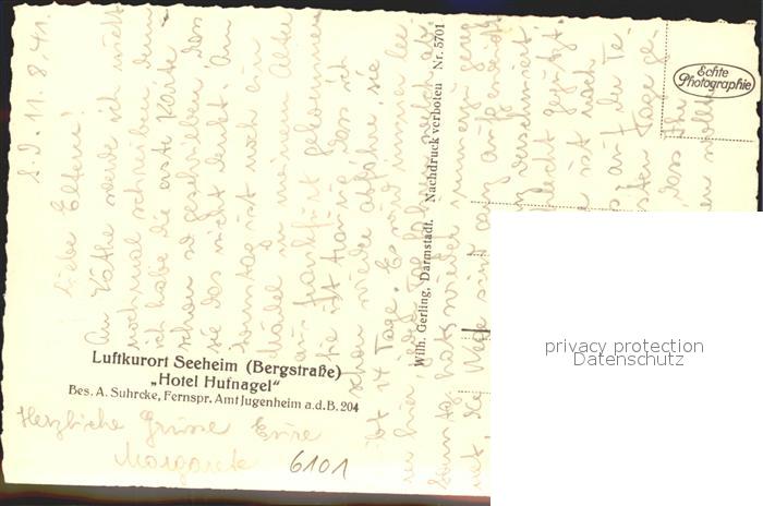41585201 Seeheim-Jugenheim Hotel Hufnagerl Suhrcke postalisch nicht gelaufen Erhaltung siehe scans Alte Ansichtskarte Postkarte hz_L Katcode 11110006432022