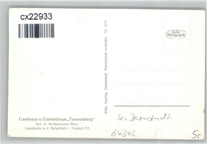 30751665 Seeheim-Jugenheim Jugenheim Gasthaus Tannenberg postalisch nicht gelaufen KatCode: 11110006432022