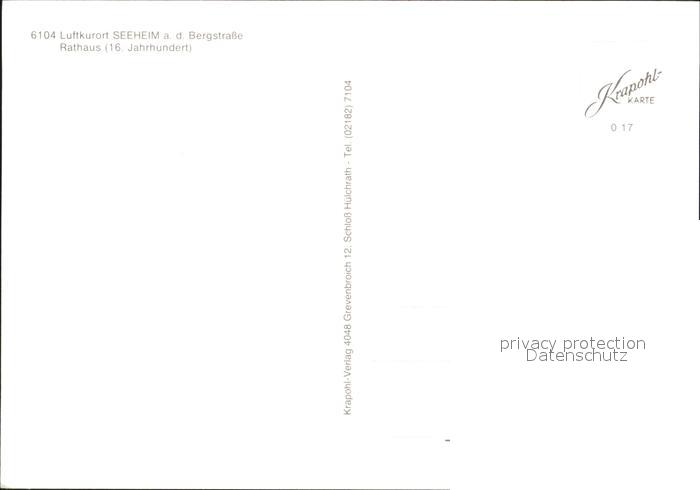 72368701 Seeheim-Jugenheim Rathaus postalisch nicht gelaufen Erhaltung siehe scans KatCode: 11110006432022