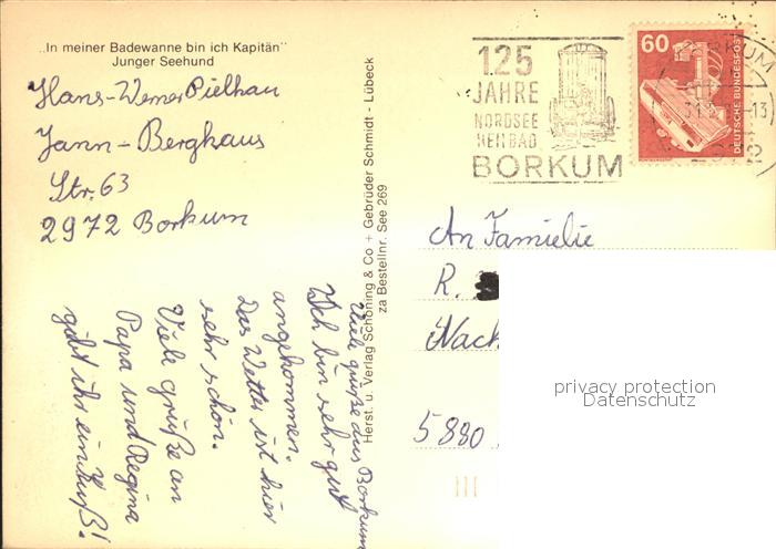 alte Postkarte Seehunde Robben Wanne postalisch gelaufen Erhaltung siehe scans