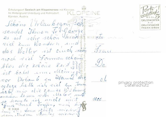 72673493 alte Postkarte Seelach Klopeinersee Erholungsort mit Kleinsee im Hintergrund Unterburg und Kuehnsdorf Fliegeraufnahme postalisch gelaufen Erhaltung siehe scans [FriedD77] KatCode: 11390213020813