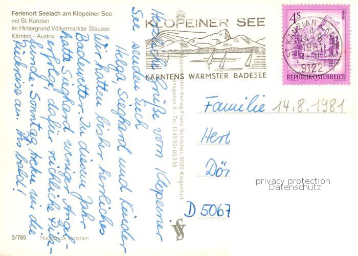 73004297 alte Postkarte Seelach Klopeinersee Fliegeraufnahme Voelkermarkter Stausee postalisch gelaufen Erhaltung siehe scans [KathaD81] KatCode: 11390213020813