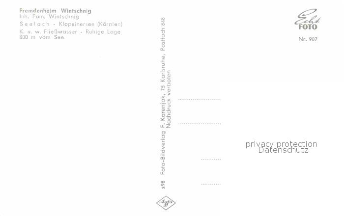 12635401 Seelach Klopeinersee Fremdenheim Wintschnig postalisch nicht gelaufen Erhaltung siehe scans [LiesaD40] KatCode: 11390213020813