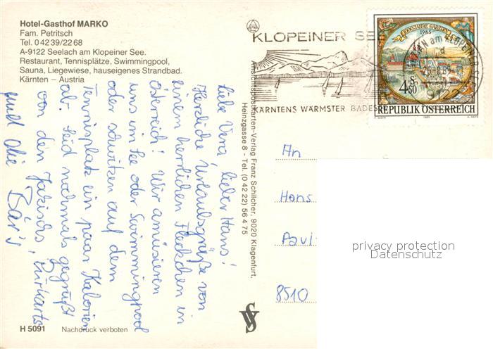 73203368 alte Postkarte Seelach Klopeinersee Hotel Marko postalisch gelaufen Erhaltung siehe scans [NatalD47] KatCode: 11390213020813