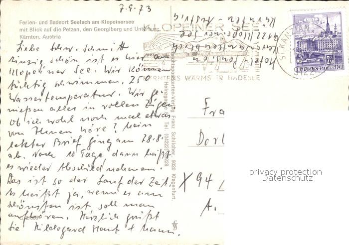 71907548 alte Postkarte Seelach Klopeinersee Petzen Georgiberg Unterburg postalisch gelaufen KatCode: 11390213020813