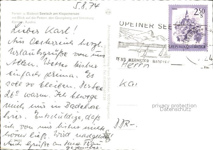 72000642 alte Postkarte Seelach Klopeinersee Petzen Georgiberg Unterburg postalisch gelaufen Erhaltung siehe scans KatCode: 11390213020813