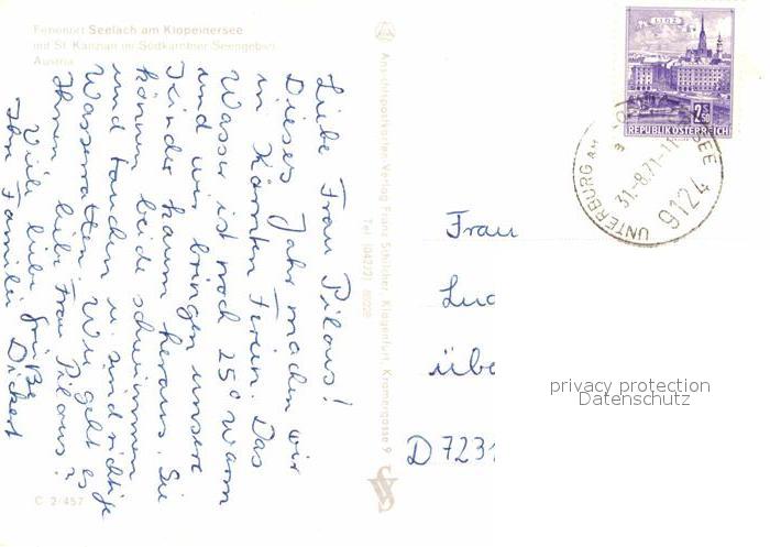 72843908 alte Postkarte Seelach Klopeinersee St. Kanzian Fliegeraufnahme postalisch gelaufen Erhaltung siehe scans [NatalD47] KatCode: 11390213020813