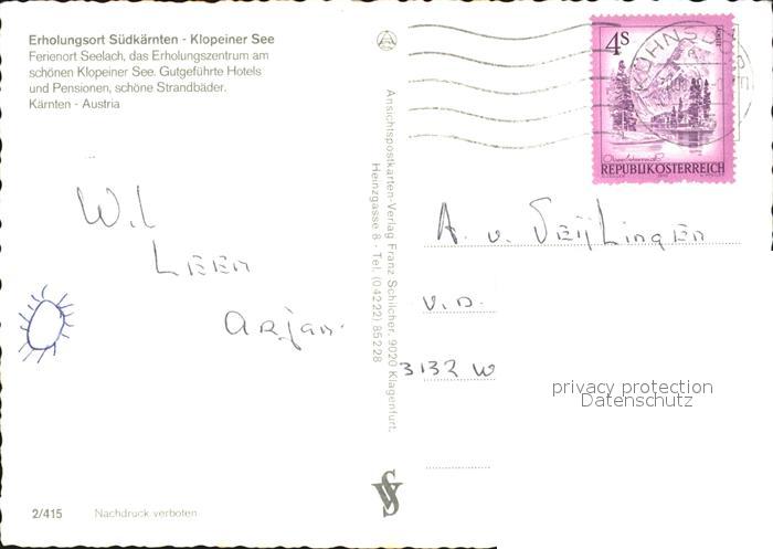 72574624 alte Postkarte Seelach Klopeinersee Strandbad postalisch gelaufen Erhaltung siehe scans [KathaD79] KatCode: 11390213020813