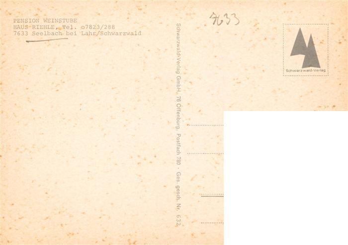 73931528 Seelbach Schutter Lahr BW Pension Weinstube Haus Riehle Gastraum postalisch nicht gelaufen Erhaltung siehe scans [WerneD78] KatCode: 11110008317127