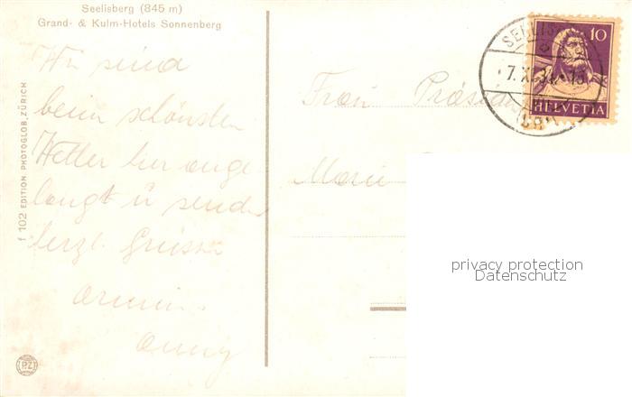 13792123 alte Postkarte Seelisberg UR Grand- u. Kulm-Hotels Sonnenberg – Schillerstein postalisch gelaufen Erhaltung siehe scans [LiesaD40] KatCode: 11470220685210