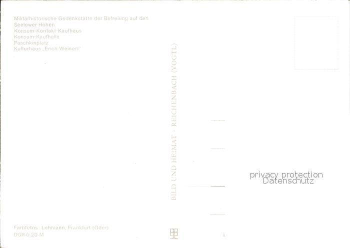 72334914 Seelow Puschkinplatz Seelower Hoehen postalisch nicht gelaufen Erhaltung siehe scans KatCode: 11110012064448