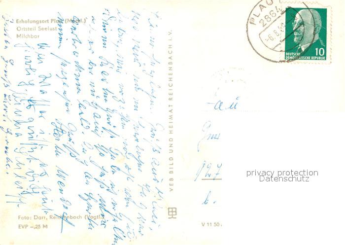 73085703 alte Postkarte Seelust Plau See Erholungsheim Plau Milchbar postalisch gelaufen Erhaltung siehe scans [FriedD77] KatCode: 11110013060061