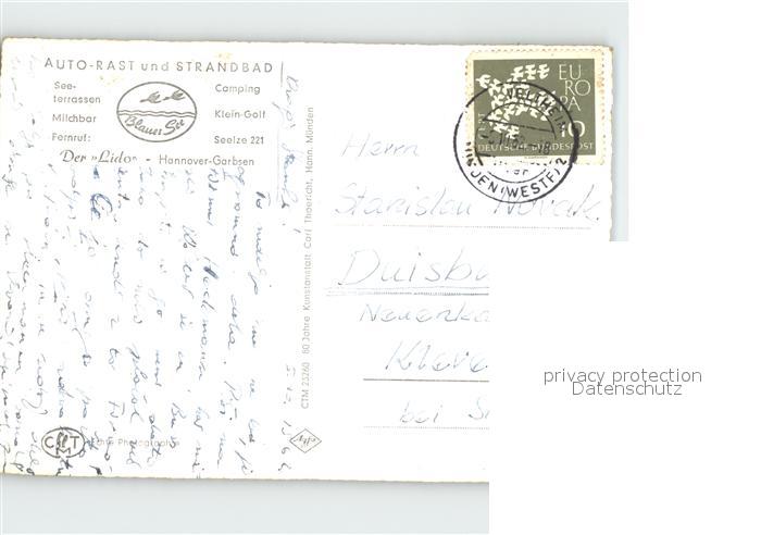 32185835 alte Postkarte Seelze Auto- Rast und Strandbad Fliegeraufnahme postalisch gelaufen Erhaltung siehe scans KatCode: 11110003241015