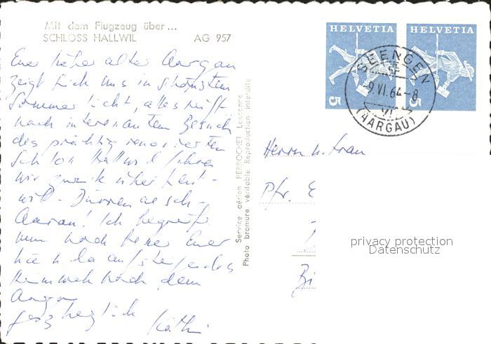 11648329 alte Postkarte Seengen AG Fliegeraufnahme Schloss Hallwyl postalisch gelaufen Erhaltung siehe scans KatCode: 11470010035346