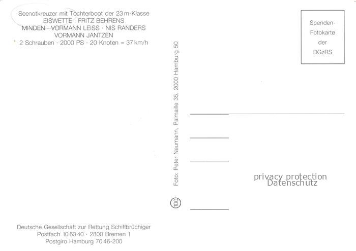 74150608 Seenotkreuzer Seenotrettung Sea Rescue Schiffe Ships Navires– Eiswette Fritz Behrens postalisch nicht gelaufen Erhaltung siehe scans [IrynaD87] KatCode: 22480000000800