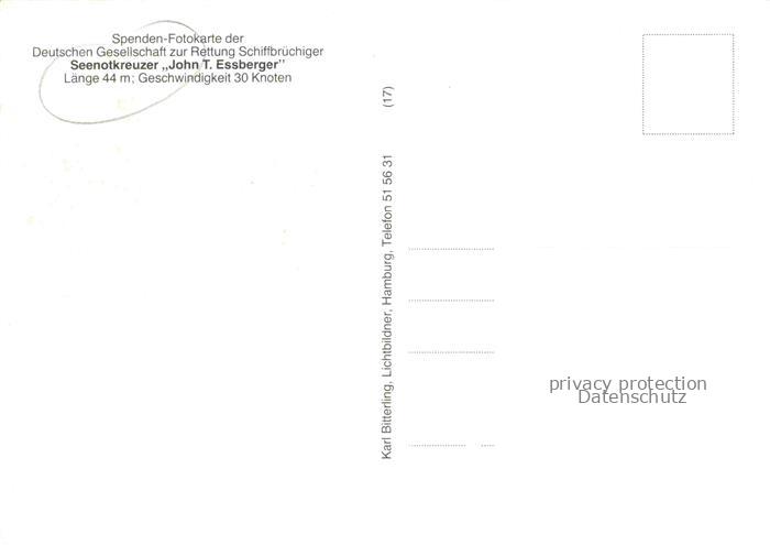 74151047 Seenotkreuzer Seenotrettung Sea Rescue Schiffe Ships Navires– John T. Essberger postalisch nicht gelaufen Erhaltung siehe scans [IrynaD87] KatCode: 22480000000800
