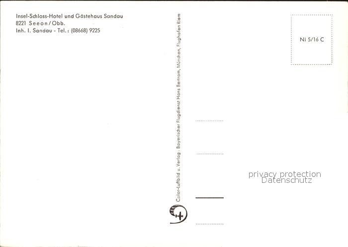 72598214 Seeon-Seebruck Fliegeraufnahme Insel Schloss-Hotel und Gaestehaus Sandau postalisch nicht gelaufen Erhaltung siehe scans [LiesaD40] KatCode: 11110009189143