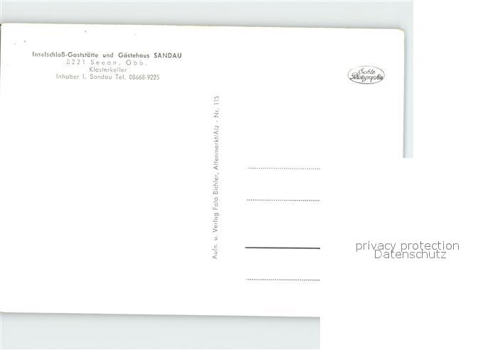 72199609 Seeon-Seebruck Inselschloss Gaststaette Klosterkeller Gaestehaus Sandau postalisch nicht gelaufen Erhaltung siehe scans KatCode: 11110009189143