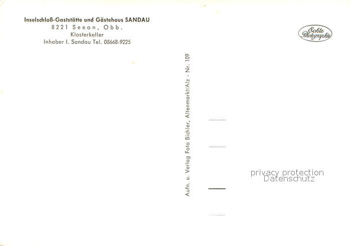 73654782 Seeon-Seebruck Inselschloss Gaststaette und Gaestehaus Sandau Restaurant Bar postalisch nicht gelaufen Erhaltung siehe scans [FriedD77] KatCode: 11110009189143