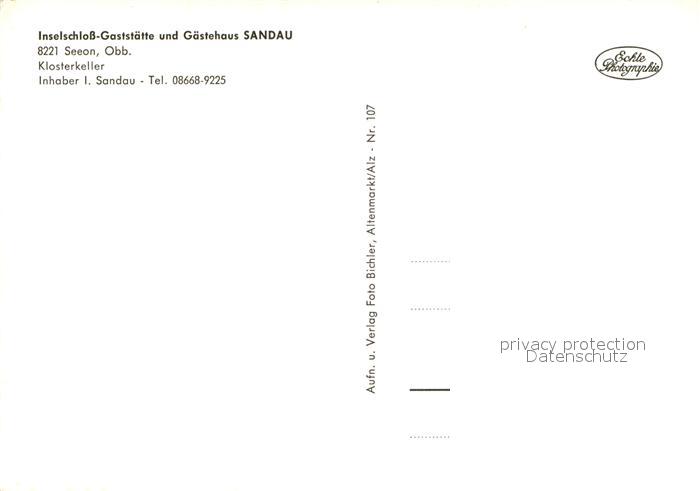 72927355 Seeon-Seebruck Inselschloss Restaurant und Gaestehaus Sandau postalisch nicht gelaufen Erhaltung siehe scans [LiesaD40] KatCode: 11110009189143