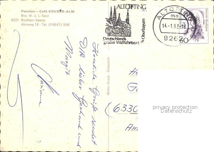 72276968 alte Postkarte Seeon-Seebruck Pension Cafe Gruber-Alm postalisch gelaufen Erhaltung siehe scans KatCode: 11110009189143