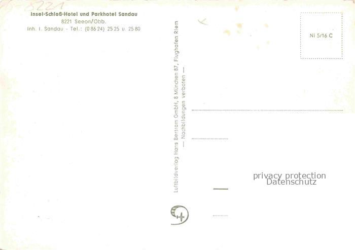 74038024 Seeon-Seebruck Traunstein Bayern Insel Schloss Hotel und Parkhotel Sandau Fliegeraufnahme postalisch nicht gelaufen Erhaltung siehe scans [WerneD78] KatCode: 11110009189143