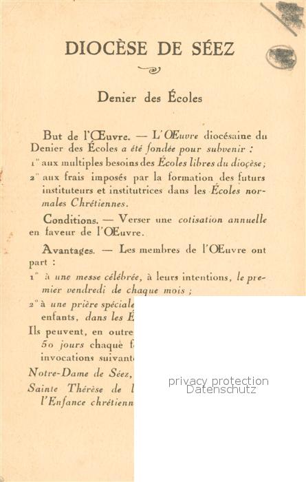 13749952 Sees 61 Diocese de Seez Son Excellence Monseigneur Pasquet postalisch nicht gelaufen Erhaltung siehe scans [FriedD77] Frie Katcode 11170061161464
