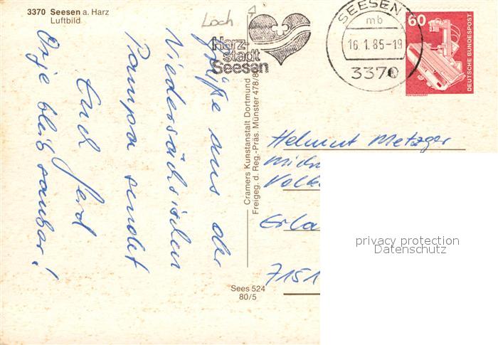 73009277 alte Postkarte Seesen Harz Fliegeraufnahme postalisch gelaufen Erhaltung siehe scans [WerneD78] KatCode: 11110003153012