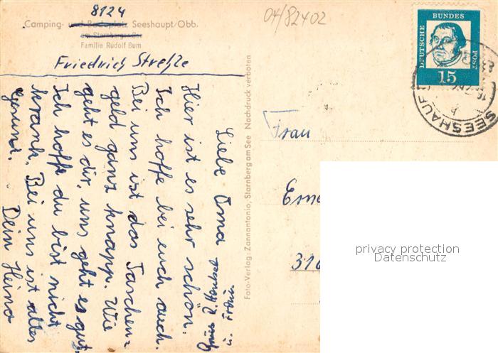 73671317 alte Postkarte Seeshaupt Campingplatz Seeshaupt am Starnberger See Panorama postalisch gelaufen Erhaltung siehe scans [WerneD78] KatCode: 11110009190152