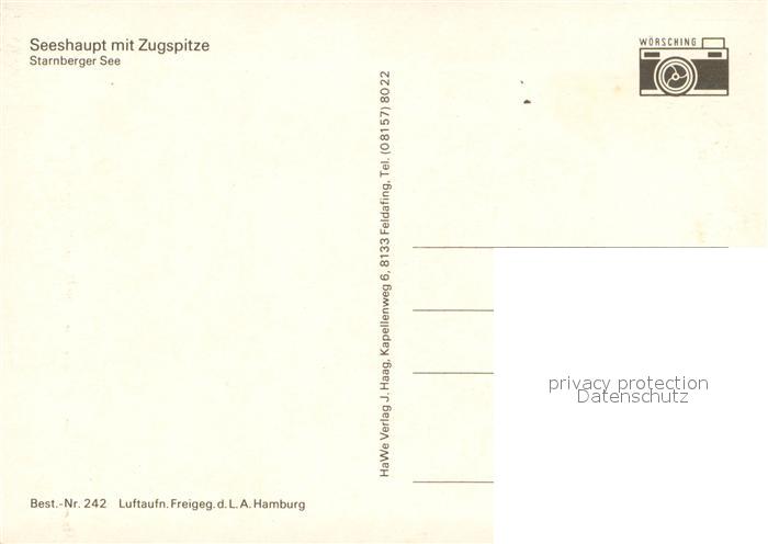73712115 Seeshaupt Fliegeraufnahme mit Zugspitze und Starnberger See postalisch nicht gelaufen Erhaltung siehe scans [WerneD78] KatCode: 11110009190152