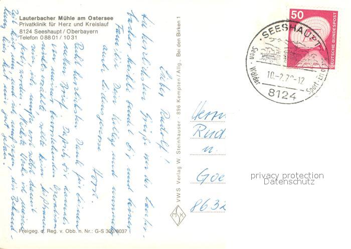 73721040 alte Postkarte Seeshaupt Lauterbacher Muehle am Ostersee Fliegeraufnahme postalisch gelaufen Erhaltung siehe scans [WerneD78] KatCode: 11110009190152