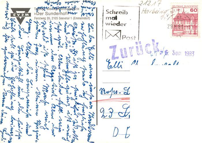 73946266 alte Postkarte Seevetal Tagungs und Jugendbildungsstaette Der Sunderhof Fliegeraufnahme postalisch gelaufen Erhaltung siehe scans [WerneD78] KatCode: 11110003353031