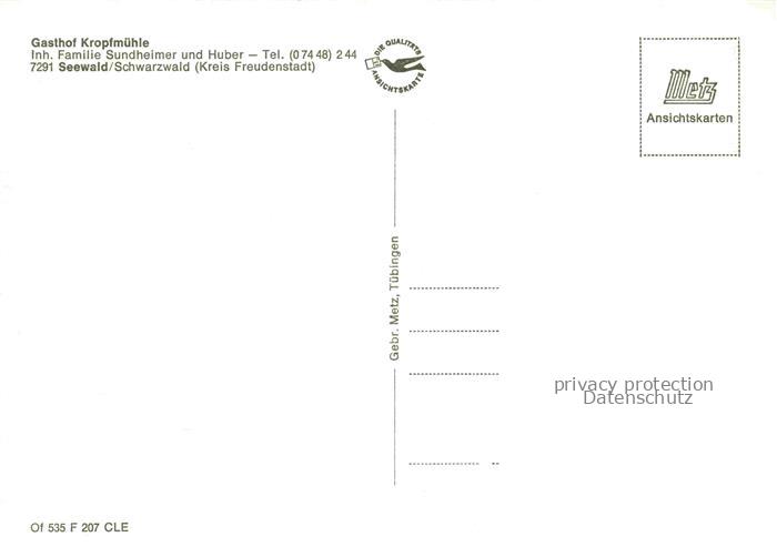 74043468 Seewald Besenfeld Gasthof Kropfmuehle im Schwarzwald postalisch nicht gelaufen Erhaltung siehe scans [FriedD77] KatCode: 11110008237073