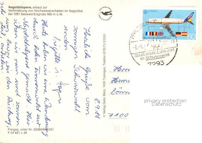 73176970 alte Postkarte Seewald Erzgrube Nagoldtalsperre Fliegeraufnahme postalisch gelaufen Erhaltung siehe scans [NatalD47] KatCode: 11110008237073