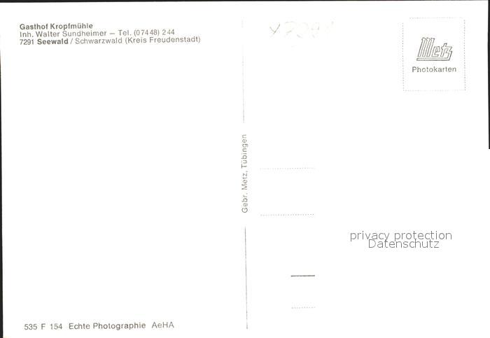 41801343 Seewald Gasthof Kropfmuehle postalisch nicht gelaufen Erhaltung siehe scans KatCode: 11110008237073