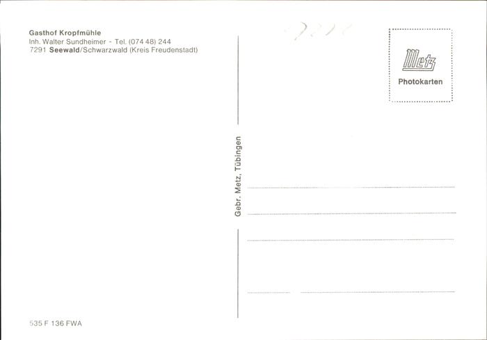 41209007 Seewald Gasthof Kropfmühle KatCode 11110008237073
