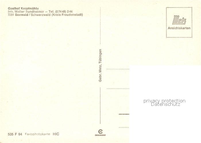 73608744 Seewald Gasthof Kropfmuehle postalisch nicht gelaufen Erhaltung siehe scans [WerneD78] KatCode: 11110008237073
