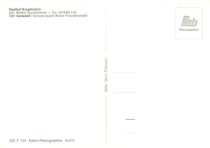 73889975 Seewald Gasthof Kropfmuehle Panorama postalisch nicht gelaufen Erhaltung siehe scans [WerneD78] KatCode: 11110008237073