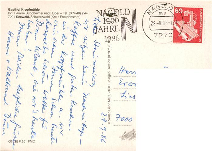 73893923 alte Postkarte Seewald Gasthof Kropfmuehle Panorama postalisch gelaufen Erhaltung siehe scans [WerneD78] KatCode: 11110008237073