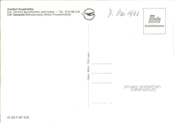 72426126 Seewald Gasthof Kropfmuehle Schwarzwald postalisch nicht gelaufen Erhaltung siehe scans KatCode: 11110008237073
