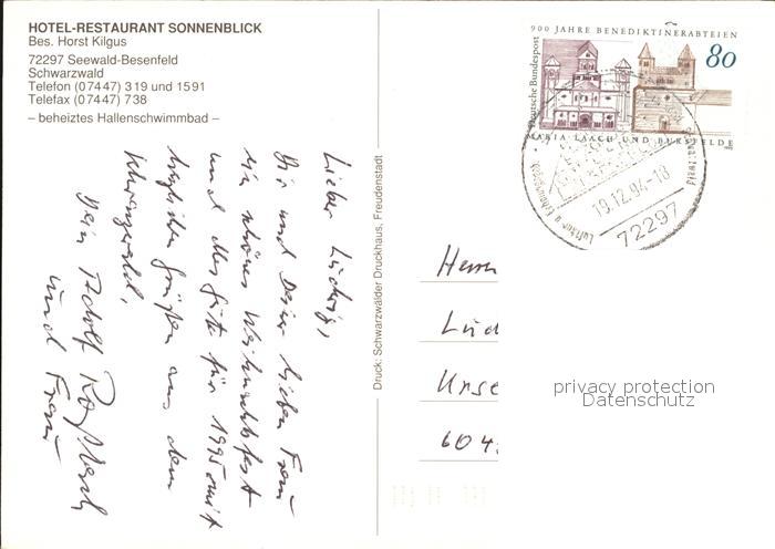 72433442 alte Postkarte Seewald Hotel Restaurant Sonnenblick postalisch gelaufen Erhaltung siehe scans KatCode: 11110008237073